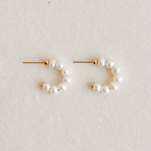 Small Baby Pearl Hoop Earrings - 14K Gold Filled